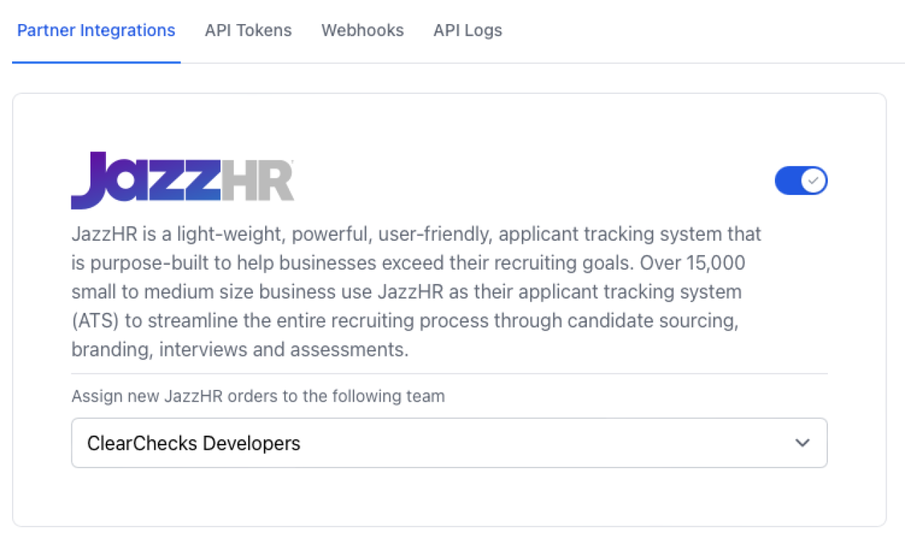 Note: The JazzHR integration may be listed as "ClearChecks" as BackgroundChecks.com platfrom was formerly ClearChecks